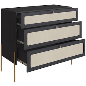 03 gavetas com corrediças telescópicas e aplique de tela sintética (PVC com poliéster).