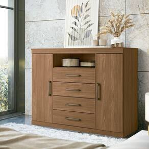 Cômoda Com 2 Portas E 4 Gavetas Havana Master Santos Andirá Jatoba A Comoda Master e de um espaco incrivel para o seu quarto, seja ele de casal, solteiro ou juvenil! Sem falar em seu design: muito pratico. Possui duas portas, uma porta com cabideiro em aluminio, para pendurar: calcas, camisas, camisetas...e a outra porta com prateleira para guardar sapatos, caixas, decoracao e demais objetos! Suas 4 amplas gavetas deslizam sobre corredicas metalicas com suavidade para guardar suas roupas com muita organizacao. E ainda possui espaco para colocar aparelhos eletronicos e claro, para sua comodidade um aparelho de TV sobre o tampo. Sao muitas funcoes em um so movel. Todo quarto precisa ter essa comoda! Caracteristicas Estrutura: MDP 12mm e 15mm Acabamento: Pintura Quantidade e Tipo de Portas: 2 Tipo de Dobradicas/Trilhos: Dobradicas Metalicas Simples Quantidade de Gavetas: 4 Tipo de Corredicas: Metalicas Tipo de Puxadores: Plastico ABS Quantidade e Tipo de Cabideiros: 1 em Aluminio Quantidade de Prateleiras: 1 Suporte ate: 30kg no tampo, 10kg no nicho e 3kg por gaveta. Manutencao: Nao limpar com alcool ou qualquer outro produto quimico, utilize somente pano seco ou levemente umedecido. Sistema de Montagem: Cavilhas, Parafusos e Minifix Itens Inclusos: 1 Comoda, Kit ferragens e Manual de montagem Garantia de Fabrica: 3 meses