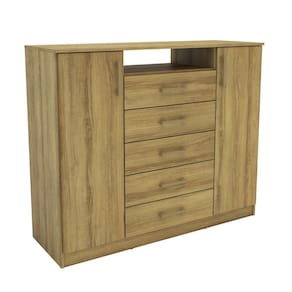 Otimize o espaço no seu quarto com a Cômoda Quebec com duas portas e 5 Gavetas, uma escolha funcional e elegante para armazenar suas roupas e pertences com praticidade e amplo espaço, adicionando um toque de sofisticação ao seu ambiente. Acabamento da Gaveta: Finish Foil Acabamento da Porta: Finish Foil Acabamento da Prateleira: Finish Foil Ambiente Principal: Quarto Complexidade da Montagem: Baixa: pode ser montado por uma pessoa sozinha Cor: Mel Cor do Produto: Mel Cor Flex: Não Cor Interna: Mel Escala de Brilho: Fosco Escala de Brilho da Gaveta: Fosco Escala de Brilho da Porta: Fosco Escala de Brilho da Prateleira: Fosco Gaveta com Chave: Não Itens Inclusos: 1 cômoda e manual de montagem Linha ou Coleção: QUARTO Manual de Montagem e Instalação: https://product-hub-prd.madeiramadeira.com.br/911766/documents/1a5e74cb-7c8d-4988-a62e-e34b33cf85332035402522517178026907425.pdf Material da Gaveta: MDP Material da Porta: MDP Material da Prateleira: MDP Material do Fundo: MDF Material do Puxador da Gaveta: PVC Material do Puxador da Porta: PVC Material Principal: MDP Montagem Flex: Não Necessita Montagem: Sim Origem do Produto: Nacional Peso: 61,7 kg Peso Máximo por Gaveta: 5 kg Peso Máximo por Prateleira: 10 kg Possui Espelho: Não Possui Nichos: 01 Possui Pés: Não Possui Portas: Sim Possui Prateleiras: Sim Quantidade de Gavetas: 05 Gavetas Quantidade de Prateleiras: 02 Prateleiras Recomendações de Uso, Manutenção e Limpeza: Para a limpeza do móvel utilizar pano levemente umedecido com água e sabão neutro Sapatas Niveladoras: Não Sistema de Montagem: Parafusos, cavilhas e minifix Suporta Até (kg): 40 kg Tipo de Corrediça da Gaveta: Metálica Simples Tipo de Dobradiça/Corrediça da Porta: Metálica Tipo de Porta: Bater Tipo de Puxador da Gaveta: Externo Tipo de Puxador da Porta: Externo Marca: Mademovel