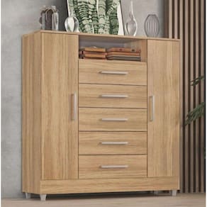 CÔMODA ISABELE| Com 5 gavetas, nicho para perfumes, eletrônicos e 2 portas com 4 prateleiras, dispõe de um design sofisticado é própria para pessoas exigentes com organização. As gavetas possuem CORREDIÇAS METÁLICAS, fazendo assim com que a gaveta não caia na hora que você for utilizar, evitando acidentes com crianças. O móvel suporta pesos de até 7kg em suas gavetas e 20kg no tampo suficiente para acomodar televisores, além disso acompanha pezinhos para melhor limpeza e durabilidade do produto. As gavetas são espaçosas e comportam um bom volume de roupas e acessórios em seu interior. Possui acabamento Touch Alto-Relevo ou Alto Brilho UV e Semibrilho parte interna. Tem um design moderno que ao mesmo tempo atende muito bem as reais necessidades de uma ou duas pessoas. Altura 1,21m Largura 1,10m Profundidade 0,40m Atenção! Confira as dimensões deste produto e certifique-se de que passará normalmente por supostos elevadores, portas, escadas e/ou corredores de sua moradia; As imagens são ilustrativas, eletrodomésticos e demais objetos que compõem o cenário, não fazem parte do anúncio; Sobre a tonalidade das cores, poderá ocorrer alterações conforme a configuração do seu monitor. Orientamos que a montagem e instalações do produto seja realizado por um técnico de sua confiança, após a sua entrega. Garantia de 3 meses pelo fornecedor.