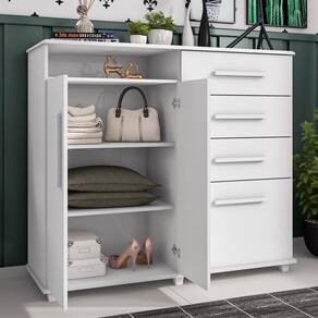 A Cômoda é compacta e ideal para acomodar suas roupas, calçados ou qualquer outro objeto de sua escolha.