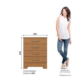 - Altura 84 x Largura 65 x Profundidade 40cm. Produto Montado: Sim Acabamento da Gaveta: Pintura UV Acabamento dos Pés: Pintura Altura dos Pés: 5 cm Altura Máxima dos Pés: 5.0000 Ambiente Principal: Quarto codigo_ean: 7900288338754 Complexidade da Montagem: Média: pode ser montado por mais de uma pessoa e/ou necessite de maior conhecimento para montagem Cor: Marrom Cor do Produto: Marrom Cor Interna: Bege Escala de Brilho: Brilhante Escala de Brilho da Gaveta: Fosco Gaveta com Chave: Não Itens Inclusos: 1 Cômoda, Manual de Montagem e Kit Ferragem Manual de Montagem e Instalação: https://product-hub-prd.madeiramadeira.com.br/944816849/documents/6574071f-b0ad-4e8f-97f2-21ec3c4ed0f13396988613517713548240048.pdf Marca: Briz Material da Gaveta: MDF/MDP Material do Fundo: MDP Material do Puxador da Gaveta: Alumínio Material dos Pés: ABS Material Principal: MDF/MDP Necessita Montagem: Sim Origem do Produto: Nacional Pés Reguláveis: Não Peso: 20 kg Peso Máximo por Gaveta: 3 kg Possui Espelho: Não Possui Nichos: Não Possui Pés: 04 Possui Portas: Não Possui Prateleiras: Não Possui Rodízio: Não Quantidade de Gavetas: 04 Gavetas Recomendações de Uso, Manutenção e Limpeza: Para limpeza de seu móvel, use uma flanela limpa e seca. Não utilize produtos químicos que possam danificar o produto. Sapatas Niveladoras: Não Sistema de Montagem: Parafusos e Cavilhas Suporta Até (kg): 15 kg Tipo de Corrediça da Gaveta: Metálica Simples Tipo de Puxador da Gaveta: Externo Marca: Não Informado