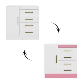 Características: Material da Estrutura em MDP Acabamento em Pintura UV 04 Gavetas com corrediças metálicas 01 Porta com dobradiças metálicas Puxadores em Plástico ABS