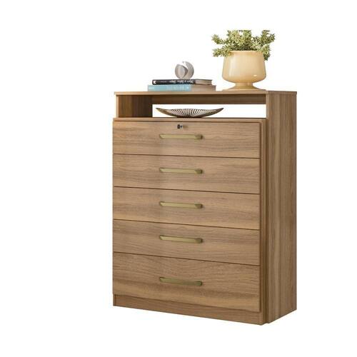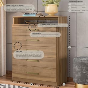 Cômoda Com 5 Gavetas Multimóveis Cr40116 Amêndola Amêndola A Cômoda com 5 Gavetas Multimóveis CR40116 é o móvel perfeito para quem busca funcionalidade e estilo. Sua estrutura em MDP e acabamento em pintura UV garantem durabilidade e resistência, proporcionando um produto de alta qualidade. Com cinco gavetas equipadas com corrediças metálicas e puxadores em ABS, você terá espaço de sobra para guardar suas roupas e acessórios. Além disso, uma das gavetas possui chave, oferecendo segurança extra para seus objetos pessoais. A cômoda conta com um compartimento especial projetado especialmente para armazenar pequenos objetos. Possui capacidade de até 3kg por gaveta. Conteúdo da Embalagem: 1 (uma) Cômoda Manual de Montagem Kit Ferragem