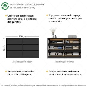 - Amplo espaço de organização: 6 gavetas funcionais para roupas e acessórios.