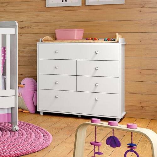 A Cômoda Pão de Mel é perfeita para o quarto de seu bebê. Possui 6 gavetas de diferentes tamanhos, garantindo um amplo espaço interno para a organização do ambiente. Informações Técnicas Cor: Branco Possui Portas: Não Acabamento: Pintura Produto Montado: Não Sistema de Montagem: Parafusos e Cavilhas. Material da estrutura: MDP Acabamento da Gaveta: Pintura Acompanha Manual de Instalação: Sim Altura: 94 cm Ambiente: Quarto Infantil Complexidade da Montagem: Baixa Cor Predominante: Branco Garantia do Fornecedor: 03 Meses Largura: 93 cm Material: MDP Material da Gaveta: MDP Material do Fundo: MDP Material do Puxador: ABS Cromado Material Principal: MDP Necessita Montagem: Sim Possui Gavetas: 06 Possui Prateleiras: Não Profundidade: 45,5 cm Tipo de Corrediça: Metálica Tipo de Corrediça da Gaveta: Metálica Tipo de Puxador: Externo