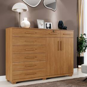 A Comoda Benetil New Triunfo e perfeita para quem busca organizacao, seguranca e design moderno. Com 8 gavetas espacosas sendo 1 com chave, voce mantem seus pertences seguros e seu quarto bem organizado.