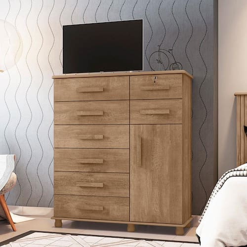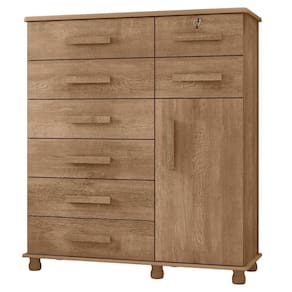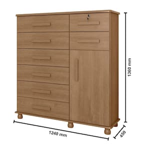 Características do Produto:- Corpo em MDP- 8 Gavetas, uma Contendo Fechadura e Chave- 1 Porta de Abrir- Peças de 15mm- Tampo superior de 25mm- Tampo e base em MDF- Pés em Madeira- Corrediça telescópica. INFORMAÇÕES TÉCNICAS- Peso: 77,60 Kg- Altura: 136cm- Largura: 124cm- Profundidade: 45cm- Este produto é vendido desmontado. Acompanha Kit Ferragens e Esquema de Montagem (Montagem não inclusa).Garantia: - Garantia de 90 dias (contra defeito de fabricação).
