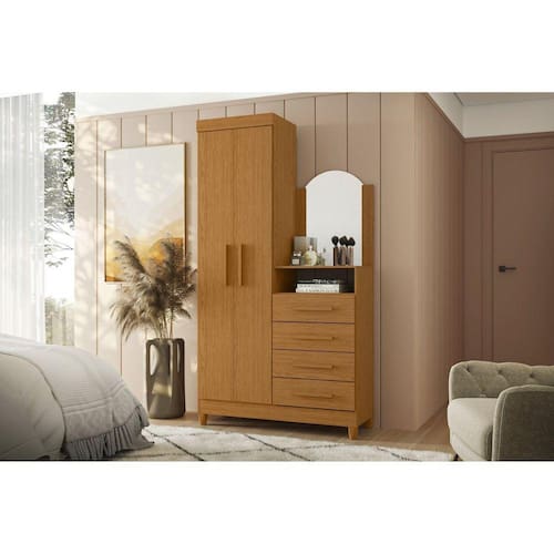 A cômoda Capri é excelente para quem procura um móvel menor, mas que ainda assim tenha espaço para organizar peças e itens diversos. Ela conta com 4 gavetas e 2 portas com puxadores em MDF revestidos. Traz um excelente espaço interno com cabideiro e prateleira. Possui espelho e tampo para acomodar cosméticos e itens de beleza. Produto Montado: Sim Acabamento da Gaveta: Pintura UV Acabamento da Porta: Pintura UV Acabamento da Prateleira: Pintura UV Acabamento dos Pés: Pintura Altura do Espelho: 60 cm Altura dos Pés: 5 Altura Máxima dos Pés: 5.0000 Ambiente Principal: Quarto codigo_ean: 7908141228938 Complexidade da Montagem: Média: pode ser montado por mais de uma pessoa e/ou necessite de maior conhecimento para montagem Cor: Cinamomo Cor do Produto: Cinamomo Cor Interna: Branco Escala de Brilho: Fosco Escala de Brilho da Gaveta: Fosco Escala de Brilho da Porta: Fosco Escala de Brilho da Prateleira: Fosco Espessura do Espelho: 3 mm Formato do Espelho: Oval Gaveta com Chave: Não Itens Inclusos: 1 Cômoda, Kit Ferragens e Manual de Montagem Largura do Espelho: 39 cm Linha ou Coleção: Albatroz Manual de Montagem e Instalação: https://product-hub-prd.madeiramadeira.com.br/885732/documents/d5d1702d-9188-455a-ab37-e80cf9fa06280451esquema8495comodacapri.pdf Material da Gaveta: MDP Material da Porta: MDP Material da Prateleira: MDP Material do Fundo: HDF Material do Puxador da Gaveta: MDF Material do Puxador da Porta: MDF Material dos Pés: ABS Material Principal: MDP Necessita Montagem: Sim Origem do Produto: Nacional Pés Reguláveis: Não Peso: 43,6 kg Peso Máximo por Gaveta: 3 kg Peso Máximo por Prateleira: 4 kg Possui Espelho: Sim Possui Nichos: 01 Possui Pés: 04 Possui Portas: Sim Possui Prateleiras: Sim Possui Rodízio: Não Quantidade de Espelho: 01 Quantidade de Gavetas: 04 Gavetas Quantidade de Prateleiras: 01 Prateleira Recomendações de Uso, Manutenção e Limpeza: Limpar Com flanela Ou Pano Macio Seco, Não Utilizar Produtos Abrasivos, Desengordurantes, Álcool Ou Solvente. Não Expor O Produto Diretamente Á Luz Solar E Á Umidade. Sapatas Niveladoras: Não Sistema de Montagem: Parafusos, Cavilhas E Minifix. Suporta Até (kg): 27 kg Tipo de Corrediça da Gaveta: Metálica Simples Tipo de Dobradiça/Corrediça da Porta: Metálica Tipo de Fixação do Espelho: Molduras Tipo de Porta: Bater Tipo de Puxador da Gaveta: Externo Tipo de Puxador da Porta: Externo