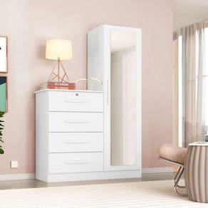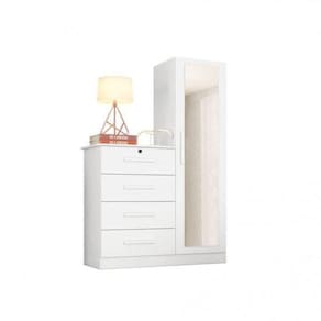 Deixe seu quarto completo e muito mais bonito com essa linda cômoda Cancun, além de transformar o visual do seu quarto ela também pode ajudar na organização das suas roupas. Ela possui 1 porta com espelho e 4 gavetas, sendo a primeira com chave, com corrediças telescópicas que proporcionam mais abertura e resistência das gavetas. Seu tampo é de MDF fresado de 15 mm, a primeira gaveta é com chave e os puxadores são em MDF revestidos. Destaca-se pelo excelente acabamento Siena Móveis. Acabamento da Gaveta: Pintura Acabamento da Porta: Pintura Acabamento da Prateleira: Pintura Acabamento dos Pés: Acompanha a Almofada: Não Altura do Espelho: Altura do Espelho 01: Altura do Espelho 02: Altura do Espelho 03: Altura do Espelho 04: Altura do Espelho 05: Altura do Espelho 06: Altura dos Pés: Ambiente: Quarto Ambiente Principal: Quarto Complexidade da Montagem: Alta: deve ser montado por um montador especializado Cor: Branco Cor do Produto: Branco Cor Flex: Cor Interna: Branco Escala de Brilho: Fosco Escala de Brilho da Gaveta: Semi-Fosco Escala de Brilho da Porta: Fosco Escala de Brilho da Prateleira: Semi-Brilho Espessura do Espelho: mm Fita Integrada: Formato do Espelho: Gaveta com Chave: Não Informações Complementares: Itens Inclusos: 1 cômoda com 4 gavetas e 1 porta com espelho e Manual de Montagem. Largura do Espelho: Largura do Espelho 01: Largura do Espelho 02: Largura do Espelho 03: Largura do Espelho 04: Largura do Espelho 05: Largura do Espelho 06: Linha ou Coleção: Cancun Manual de Especificação Técnica: Manual de Montagem e Instalação: https://cdn2.madeiramadeira.com.br/atributo/albatroz-moveis/1054171-esquema-comodacancun-sku475404.pdf Material da Gaveta: MDP Material da Porta: MDP Material da Prateleira: MDP Material do Fundo: HDF High Density Fiberboard Material do Puxador da Gaveta: MDF Material do Puxador da Porta: MDF Material dos Pés: Material Principal: MDP Montagem Flex: Necessita Montagem: Sim Origem do Produto: Pés Reguláveis: Peso: 54,5 Peso Máximo por Gaveta: 5 Peso Máximo por Prateleira: 3 Possui Espelho: Possui Nichos: Não Possui Pés: Não Possui Portas: 01 Possui Prateleiras: 04 Possui Rodízio: Não Possui Trocador: Não Quantidade de Espelho: Recomendações de Uso, Manutenção e Limpeza: Limpar com flanela ou pano macio seco, não utilizar produtos abrasivos, desengordurantes, álcool ou solvente. Não expor o produto diretamente à luz solar e à umidade. Rodízio com Trava: Sapatas Niveladoras: Sim Sistema de Montagem: Parafusos, cavilhas e cantoneiras Suporta Até (kg): 36 Tamanho do Espelho (A x L): 142cm X 30cm Tipo de Corrediça da Gaveta: Metálica Telescópica Tipo de Dobradiça/Corrediça da Porta: Metálica Tipo de Fixação do Espelho: Tipo de Madeira Maciça: Tipo de Madeira Maciça da Gaveta: Tipo de Madeira Maciça da Porta: Tipo de Madeira Maciça da Prateleira: Tipo de Madeira Maciça do Puxador da Gaveta: Tipo de Madeira Maciça do Puxador da Porta: Tipo de Madeira Maciça dos Pés: Tipo de Porta: Bater Tipo de Puxador da Gaveta: Externo Tipo de Puxador da Porta: Externo