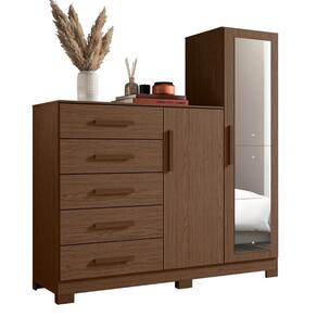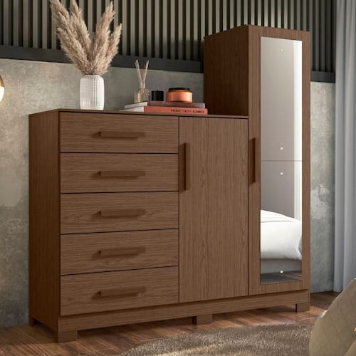 Cômoda com Espelho 5 Gavetas 2 Portas New Master Albatroz - Marrom