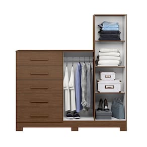 A cômoda New Master pode transformar o visual do seu quarto e ajudar na organização das suas roupas. Ela possui 5 gavetas com corrediças telescópicas que proporciona mais abertura e resistência ao móvel, e 2 portas, sendo 1 com espelho. Seu tampo é de 15 mm e os puxadores são em MDF revestidos. Além disso tudo, ela possui espaço para TV de até 43 polegadas e apresenta uma versatilidade com opção de utilizar prateleira móvel ou cabideiro em seu espaço, você escolhe a opção que atenda a sua necessidade.