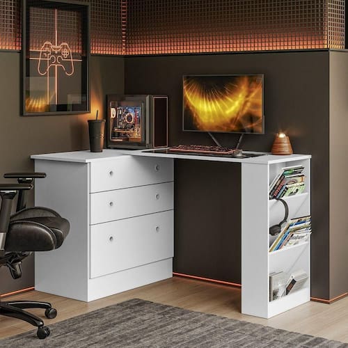 Cômoda Gamer com Mesa Giratória Multifuncional Ideal para Home Office e Espaços Compactos