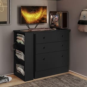 Funciona como cômoda com gavetas espaçosas, ideal para guardar roupas, acessórios, livros ou materiais de escritório. Quando necessário, sua mesa giratória com abertura de 90 oferece uma estação de trabalho ou estudo extra, perfeita para home office, setup gamer ou ambiente de estudos.