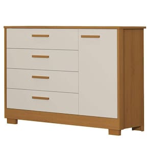 Cômoda Infantil Zaki 1 Porta e 4 Gavetas Areia Acetinado Savana - Reller