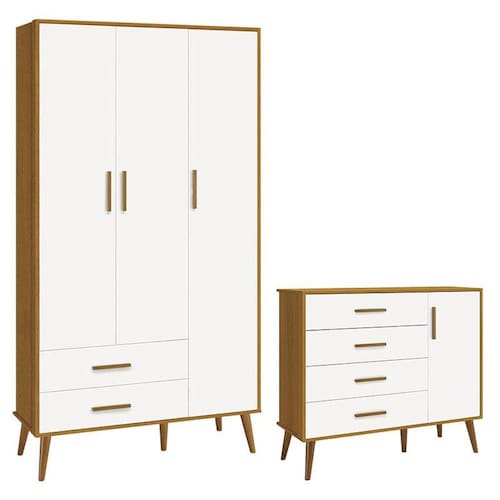 Cômoda com Porta e Guarda Roupa Infantil 3 Portas Isis Branco Acetinado Savana - Reller