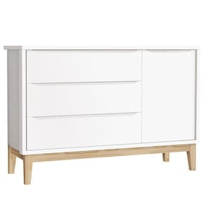 Cômoda Infantil New Classic com Porta Branco com Pés Madeira Natural ? Reller
