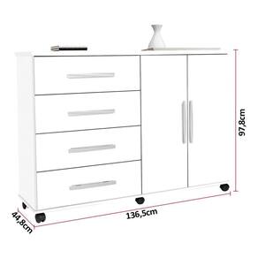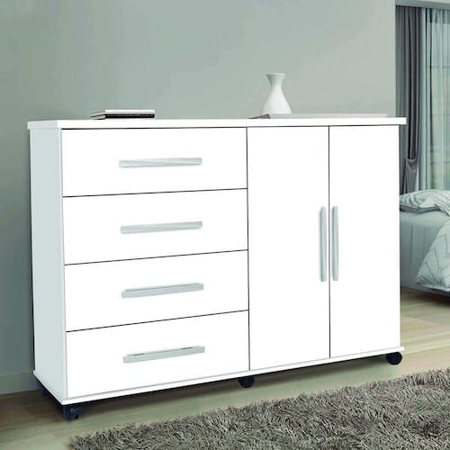 A cômoda sapateira Bali é a peça ideal para quem busca elegância e funcionalidade em um único produto. Com quatro gavetas, todas com corrediças telescópicas e travas na parte de baixo possui um ótimo espaço para organização de roupas e objetos pessoais. A sapateira é ótima para guardar sapatos e outros objetos de uso pessoal. O destaque do design dá um contraste sofisticado ao ambiente. A cômoda Bali é feita em MDP e possui 6 rodízios assim facilitando a locomoção e limpeza e o acabamento interno é da cor do móvel. Acabamento pintura UV texturizada Altura 97 cm Largura 136 cm Profundidade 44 cm