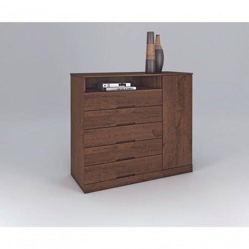 Cômoda para Quarto com Sapateira 5 Gavetas - Portugal-Braúna - Made Marcs