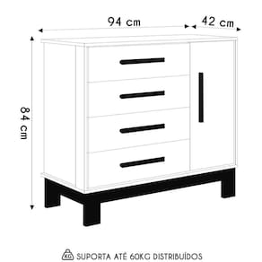 A Cômoda Sapateira possui quatro gavetas excelente profundidade e uma porta convencional com corrediças metálicas que serve como sapateira, proporcionando ainda mais organização para itens de vestuário e demais objetos. As gavetas são equipadas com corrediças metálicas para um deslizar suave. Os pés em MDF de 25mm garantem estabilidade e elegância ao móvel, enquanto os puxadores de em MDF, com alto padrão de acabamento, complementam o design sofisticado. O excelente acabamento revestido em pintura UV destaca ainda mais a cor escolhida, proporcionando um visual vibrante ao ambiente. Além disso, a cômoda possui sistema antitombamento, oferecendo adicional para uso diário. Essa Cômoda Infantil é para quem busca aliar funcionalidade, e estilo na decoração do ambiente, criando um espaço agradável e bem organizado para todas as necessidades do dia a dia.
