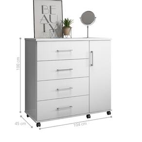 CORES DO PRODUTO (FILTRO DE CORES): BRANCO BRILHANTE | LARGURA DO PRODUTO COM EMBALAGEM (CM): 46 | QUANTIDADE DE GAVETAS: 4 | PESO DO PRODUTO (KG): 47 | MARCA: CASAH | LARGURA DO PRODUTO (CM): 104 | PESO DO PRODUTO COM EMBALAGEM (KG): 47 | QUANTIDADE DE PRATELEIRAS: 1 | COMPRIMENTO DO PRODUTO (CM): 45 | GARANTIA DO FABRICANTE: 3 | PRODUTO PRECISA DE MONTAGEM?: Sim, a montagem à facil mas sugerimos a contrataÃÃo de um montador profissional para a montagem do produto. NÃo nos responsabilizamos por danos causados no ato da montagem. | COR PREDOMINANTE: BRANCO BRILHANTE | INSTRUÃ?Ã-ES/CUIDADOS: Limpar com pano macio e seco, nÃo utilizar produtos abrasivos. | QUANTIDADE DE PORTAS: 1 | ESTADO DE ORIGEM: SP | MATERIAL PRINCIPAL: MDF | DESCRIÃ?Ã?O DO TAMANHO: 100X104X45 | ALTURA DO PRODUTO COM EMBALAGEM (CM): 21 | PRODUTO: COMODA | COMPRIMENTO DO PRODUTO COM EMBALAGEM (CM): 108 | QUANTIDADE DE CAIXAS NA EMBALAGEM: 2 | ALTURA DO PRODUTO (CM): 100