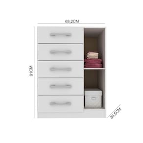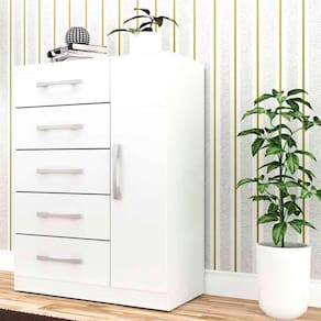 A Comoda Corais Rodial e a escolha ideal para quem busca um movel funcional e elegante para o quarto. Com 5 gavetas espacosas e 1 porta de abrir, a comoda oferece amplo espaco interno para acomodar suas roupas, acessorios e outros itens pessoais.