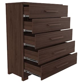 - Gavetas: Sim, 5, com corrediças telescópicas e puxadores de madeira;