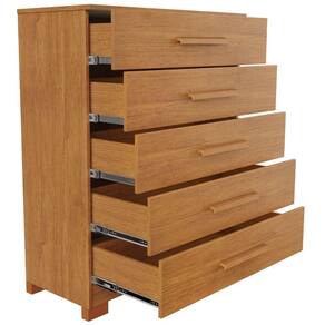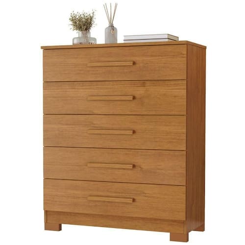 - Gavetas: Sim, 5, com corrediças telescópicas e puxadores de madeira;