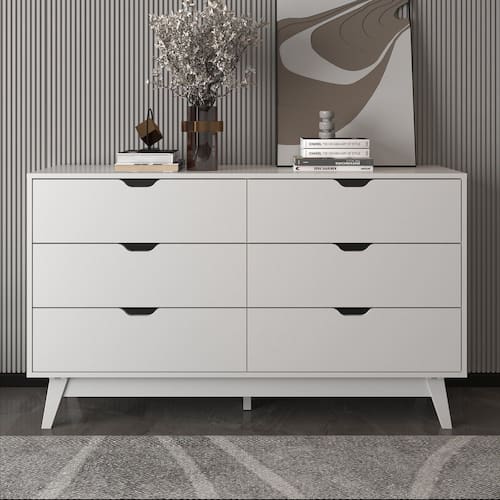 Cômoda de 136cm com 6 Gavetas e Pé Cônico Branco -
