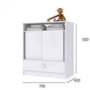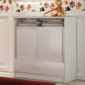 Cômoda de Bebê 2 Portas de Correr 1 Gaveta Móveis Percasa Branco. Cômoda em MDP BP branco 15 mm (nas laterais e prateleiras), acabamento laca na frente da gaveta e portas. Gaveta com corrediça telescópica. Puxador na cor branca. Pode ser utilizado em quarto de bebê, infantil ou juvenil. Ean: 7898519564785
