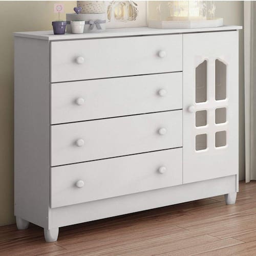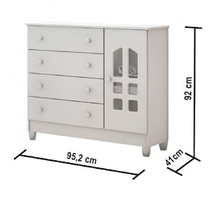 Quando o assunto é o quarto dos pequenos, os pais prezam pela beleza e organização, deixando-o sempre alegre e arrumado. Pensando nisso, a cômoda Selena foi feita pela Carolina baby, especialmente para manter o cantinho dos pequenos ainda mais aconchegante. Foi produzida em MDP/MDF de alta resistência que é apropriado para produção de móveis, ecologicamente correto, e elaborado com madeira reflorestada, apresentando alto nível de durabilidade, com 4 gavetas em MDF com corrediças telescópicas e sistema de travas de segurança, 1 porta em MDF com dobradiças metálicas. Pintura em acabamento por camadas de verniz fotocurado UV de composição atóxica, que deixará seu produto com cara de novo por mais tempo e dar um toque de sofisticação e modernidade para o quarto do seu baby Acabamento da Gaveta: Pintura UV Acabamento da Porta: Pintura Texturizada UV Acabamento da Prateleira: Pintura UV Acompanha a Almofada: Não Altura dos Pés: 10 cm Ambiente: Quarto de Bebê Ambiente Principal: Quarto de Bebê Complexidade da Montagem: Média: pode ser montado por mais de uma pessoa e/ou necessite de maior conhecimento para montagem Cor: Branco Brilho Cor do Produto: Branco Brilho Cor Interna: branco Escala de Brilho: Brilhante Escala de Brilho da Porta: Brilhante Escala de Brilho da Prateleira: Brilhante Gaveta com Chave: Não Itens Inclusos: 1 Cômoda de Bebê e Manual de Montagem. Manual de Montagem e Instalação: https://cdn2.madeiramadeira.com.br/atributo/carolina-moveis/516408-284795.pdf Material da Gaveta: MDP Material da Porta: MDF Material da Prateleira: MDP Material do Fundo: HDF Material do Puxador da Gaveta: PVC Material do Puxador da Porta: PVC Material dos Pés: PVC Material Principal: MDF/MDP Necessita Montagem: Sim Origem do Produto: Nacional Peso: 32,5 kg Peso Máximo por Gaveta: 15 kg Peso Máximo por Prateleira: 15 kg Possui Espelho: Não Possui Nichos: Não Possui Pés: 04 Possui Portas: 01 Possui Prateleiras: 01 Possui Trocador: Não Recomendações de Uso, Manutenção e Limpeza: Limpeza com pano seco Sapatas Niveladoras: Não Sistema de Montagem: Cavilhas e Parafusos Suporta Até (kg): 50 kg Tipo de Corrediça da Gaveta: Metálica Telescópica Tipo de Dobradiça/Corrediça da Porta: Metálica Tipo de Puxador da Gaveta: Externo Tipo de Puxador da Porta: Externo