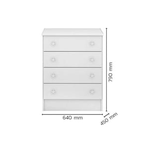 A Cômoda com 4 Gavetas Doce Sonho foi produzida especialmente para quem procura comodidade ao organizar as roupas e acessórios do bebê. Por ser compacta, é ideal para ambientes pequenos que precisam de otimização do espaço. Possui puxadores duplos com formato de estrela, que deixará o ambiente mágico. O móvel conta com sistema anti-tombamento, que garante segurança para evitar riscos de acidentes. Acabamento da Gaveta: Pintura UV Ambiente Principal: Quarto de Bebê Complexidade da Montagem: Alta: deve ser montado por um montador especializado Cor: Branco Cor do Produto: Branco Cor Flex: Não Cor Interna: Branco Escala de Brilho: Brilhante Escala de Brilho da Gaveta: Brilhante Gaveta com Chave: Não Itens Inclusos: 1 Cômoda, Kit Ferragens e Manual de Montagem Linha ou Coleção: Doce Sonho Manual de Montagem e Instalação: https://cdn2.madeiramadeira.com.br/atributo/qmovi/1328681-777-cOmoda-4-gavetas-doce-sonho-instruCoes-de-montagem.pdf Material da Gaveta: MDP Material do Fundo: MDF Material do Puxador da Gaveta: Poliestireno Material Principal: MDP Montagem Flex: Não Necessita Montagem: Sim Origem do Produto: Nacional Peso: 20 Peso Máximo por Gaveta: 5 Possui Espelho: Não Possui Nichos: Não Possui Pés: Não Possui Portas: Não Possui Prateleiras: Não Possui Trocador: Não Recomendações de Uso, Manutenção e Limpeza: Não utilize produtos químicos ou abrasivos para limpar seus móveis. A manutenção em geral, exige apenas a retirada do pó com um pano seco. Mas, a limpeza também pode ser feita utilizando um pano levemente umedecido com água e/ou álcool. Em seguida, a superfície deve ser seca com a ajuda de um pano limpo e macio. Não expor o produto diretamente à luz solar. Sapatas Niveladoras: Não Sistema de Montagem: Parafusos e cavilhas Suporta Até (kg): 35 Tipo de Corrediça da Gaveta: Metálica Simples Tipo de Puxador da Gaveta: Externo