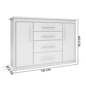 Dimensões doproduto:Largura 135 cm; Profundidade 47,6 cm; Altura 94,6 cm.
