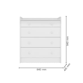 Cômoda de Bebê com Trocador Doce Sonho 2523 Branco. A Cômoda com 4 Gavetas e Trocador Doce Sonho é o produto ideal para quem precisa de funcionalidade em pouco espaço. O móvel possui espaço para trocador, garantindo praticidade na hora de trocar o bebê. O sistema anti-tombamento, garante segurança para evitar riscos de acidentes. Seu design conta com puxadores duplos com formato de estrela, que deixam o ambiente mágico. Recomendações de Uso, Manutenção e Limpeza: Não utilize produtos químicos ou abrasivos para limpar seus móveis. A manutenção em geral, exige apenas a retirada do pó com um pano seco. Mas, a limpeza também pode ser feita utilizando um pano levemente umedecido com água e/ou álcool. Em seguida, a superfície deve ser seca com a ajuda de um pano limpo e macio. Não expor o produto diretamente à luz solar. Ean: 7909903308028