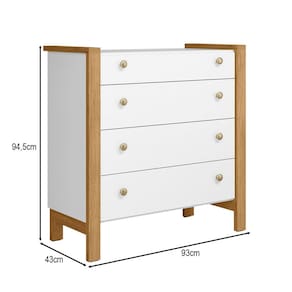O(a) Cômoda de Bebê Flora 4 Gavetas Branco Acetinado - Qmovi é produzido em MDP na escala de brilho Acetinado, e possui um grau de dificuldade de montagem: Médio.