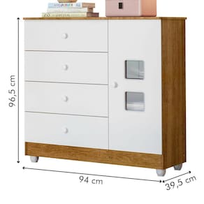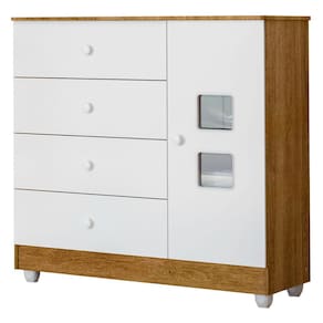 O(a) Cômoda de Bebê Life 1 Porta 4 Gavetas Branco/Ypê - Tigus é produzido em MDF e MDP na escala de brilho Semi-Brilho, e possui um grau de dificuldade de montagem: Médio.