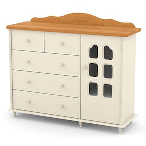 Cômoda Infantil Provence 5 Gavetas 1 Porta Matic Off White/Freijó