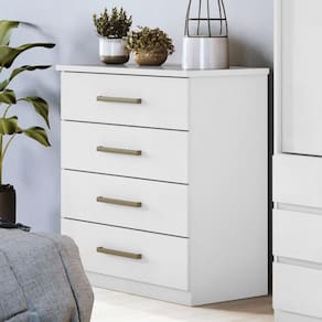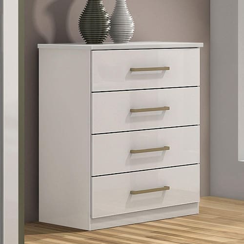 A Cômoda 4 Gavetas Baião Lopas tem design moderno e minimalista, ideal para guardar roupas e objetos pessoais. Possui 04 gavetas com corrediças telescópicas, que oferecem mais segurança ao abrir as gavetas, evitando que elas saiam completamente do móvel. Essa cômoda para quarto possui tampo de 25 mm, um material resistente, que suporta colocar televisores ou até mesmo aparelho de som. Já os puxadores na cor bronze, trazem um visual discreto e elegante ao produto. A cômoda com gavetas Baião Lopas é fabricada com madeira MDP, uma estrutura de alta durabilidade que concilia praticidade para montar e desmontar o móvel garantindo sua vida útil. Essa cômoda de madeira com pintura em U.V. e acabamento em alto brilho, tem um teor de resistência elevado, além de proporcionar mais agilidade no dia a dia facilitando a limpeza. Preencha seu quarto com graça, charme e estilo com a Cômoda 4 gavetas Baião Lopas.