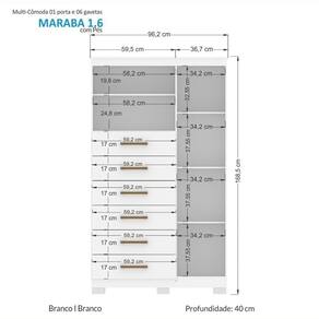 Cômoda De Madeira 6 Gavetas 1 Porta Marabá Santos Andirá Branco A Santos Andirá apresenta a Multi Cômoda Marabá, um móvel incrível que pode ser utilizado em vários ambientes da sua casa: na cozinha, na garagem, no quarto, na lavandeira. Sua versatilidade permite que você guarde diversos objetos e utensílios. E por falar em organização, ele conta com 06 amplas gavetas com corrediças metálicas, 2 prateleiras externas e uma porta com 3 prateleiras internas. É muito espaço para guardar tudo que precisa. Os pés facilitam a limpeza embaixo do móvel. NA