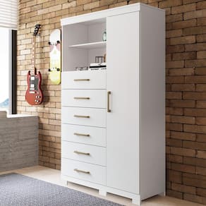 A Santos Andirá apresenta a Multi Cômoda Marabá, um móvel incrível que pode ser utilizado em vários ambientes da sua casa: na cozinha, na garagem, no quarto, na lavandeira. Sua versatilidade permite que você guarde diversos objetos e utensílios. E por falar em organização, ele conta com 06 amplas gavetas com corrediças metálicas, 2 prateleiras externas e uma porta com 3 prateleiras internas. É muito espaço para guardar tudo que precisa. Os pés facilitam a limpeza embaixo do móvel.