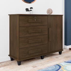 A Cômoda Grécia da RV Móveis é a opção certa para compor o ambiente do seu quarto e deixar seu espaço muito mais elegante. Essa cômoda de madeira possui 4 gavetas com corrediças telescópicas que garantem a abertura suave dos repartimentos e revelam um amplo espaço interno para você arrumar seus pertences. Sua porta com dobradiças metálicas possui duas prateleiras interna, permitindo que você mantenha o ambiente mais organizado, podendo guardar objetos, roupas e sapatos de forma fácil e prático. Os puxadores em MDF são resistentes e sofisticados, capazes de deixar essa cômoda para quarto com um visual mais moderno, perfeito para encaixar em qualquer decoração. Além disso, seus pés em plástico são reforçados e oferecem maior facilidade no momento da limpeza, possibilitando que você limpe debaixo do móvel. A estrutura dessa cômoda 4 gavetas, é composta por madeira MDF e MDP, materiais extremamente resistentes e capazes de proporcionar um acabamento perfeito ao produto. A pintura impressão U.V com acabamento fosco completa o encanto da cômoda por ser resistente à exposição da luz e capaz de proporcionar a durabilidade ao produto. Complete seu quarto com a cômoda para quarto Grécia RV.