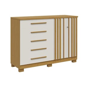 Material das Portas - Portas em MDF Tipo de Dobradiças - Dobradiças Metálicas Diferenciais das Portas - Portas com Detalhe Ripado Quantidade de Portas - 2 Portas de Abrir Material das Gavetas - Gavetas em MDF Tipo de Corrediça - c/ Corrediças Telescópicas Quantidade de Gavetas - 5 Diferenciais das Gavetas - Gaveta com Chave Tipo dos Pés - MDF Quantidade de Pés - 6 pés Material das Prateleiras - Prateleiras em MDF Quantidade de Prateleiras - 2