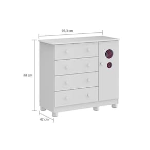 Cômoda de Quarto Bolinha c/ 1 Porta Cristal e 4 Gavetas Branco - Peroba