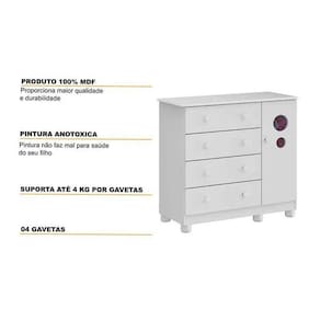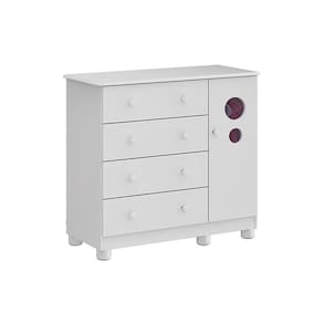 Cômoda de Quarto Bolinha c/ 1 Porta Cristal e 4 Gavetas Branco - Peroba