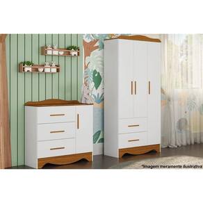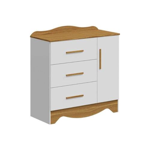 Cômoda de Quarto Clara c/1 Porta Lisa e 3 Gavetas Branco Brilho/Amendoa - Peroba