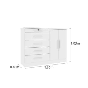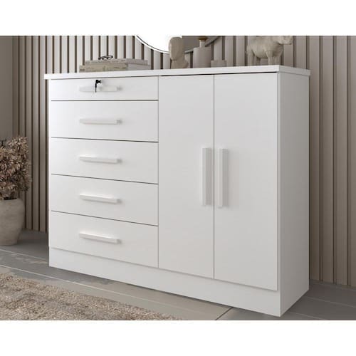 Cômoda de Quarto Istambul 2 Portas e 5 Gavetas Neve - Tcil Móveis