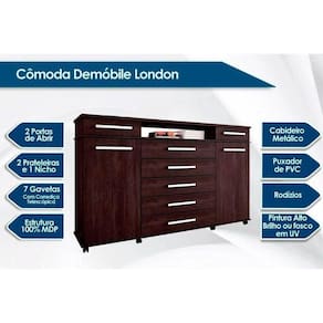 Cômoda de Quarto London c/ 2 Portas e 7 Gavetas Branco - Demóbile