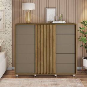 A Cômoda Decorativa Caesar é um exemplo de requinte e praticidade para o seu espaço. Produzida com excelência em MDP, esta cômoda oferece uma solução completa de armazenamento com um toque de elegância. Portas Deslizantes com Acabamento Ripado: As portas deslizantes apresentam um acabamento ripado em MDF revestido, acrescentando textura e estilo à peça. Conta com um cabideiro em alumínio proporciona um espaço conveniente para pendurar roupas e acessórios. Possui seis repartições internas oferecem organização precisa para itens variados, mantendo tudo ao alcance. Gavetas com Corrediças Telescópicas: Cinco gavetas equipadas com corrediças telescópicas garantem acesso suave e fácil aos seus pertences. Mobilidade com Rodízios: A presença de rodízios permite que você mova a cômoda com facilidade, tornando-a versátil e pronta para atender às suas necessidades. A Cômoda Decorativa Caesar é a escolha ideal para quem busca combinar elegância e funcionalidade. Sua atenção aos detalhes, versatilidade de armazenamento e mobilidade com rodízios fazem dela uma adição valiosa a qualquer ambiente. Adquira-a agora e eleve o nível de organização e estilo em seu espaço.