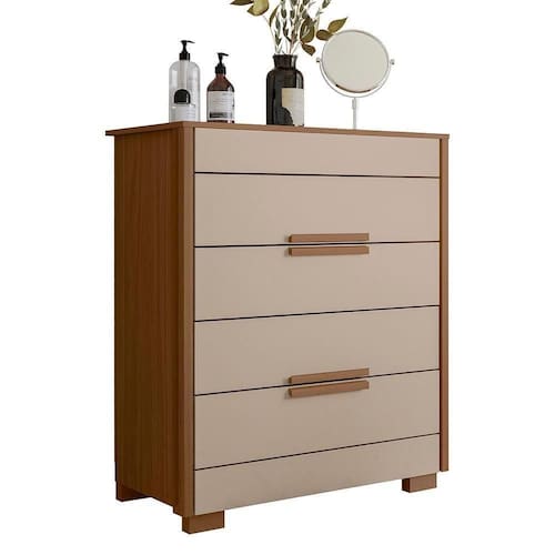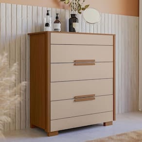 Cômoda Dhara 4 Gavetas Carvalho/fendi - Moval Carvalho/fendi Cômoda Dhara 4 Gavetas - Moval A Cômoda Dhara de 4 Gavetas é a solução ideal para quem busca aliar funcionalidade e elegância na organização do seu espaço. Com estrutura em MDP e acabamento em pintura UV, esta cômoda oferece durabilidade e um visual moderno. Suas 4 gavetas com corrediças telescópicas garantem um deslizamento suave e eficiente. O tampo de 15mm e as molduras laterais de 25mm conferem robustez ao móvel, enquanto os puxadores em MDF adicionam um toque de sofisticação. Com amplo espaço interno e pés em PVC, a Cômoda Dhara é perfeita para manter seu ambiente organizado com estilo e praticidade. ESPECIFICAÇÕES: - Estrutura em MDP - Pintura UV - 4 Gavetas - Corrediças telescópicas - Tampo de 15mm - Molduras laterais de 25mm - Puxadores em MDF - Amplo espaço interno - Pés em PVC