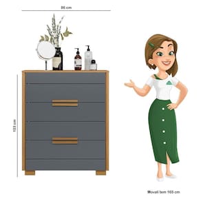 Cômoda Dhara 4 Gavetas Freijó/cinza - Moval Freijó/cinza Cômoda Dhara 4 Gavetas - Moval A Cômoda Dhara de 4 Gavetas é a solução ideal para quem busca aliar funcionalidade e elegância na organização do seu espaço. Com estrutura em MDP e acabamento em pintura UV, esta cômoda oferece durabilidade e um visual moderno. Suas 4 gavetas com corrediças telescópicas garantem um deslizamento suave e eficiente. O tampo de 15mm e as molduras laterais de 25mm conferem robustez ao móvel, enquanto os puxadores em MDF adicionam um toque de sofisticação. Com amplo espaço interno e pés em PVC, a Cômoda Dhara é perfeita para manter seu ambiente organizado com estilo e praticidade. ESPECIFICAÇÕES: - Estrutura em MDP - Pintura UV - 4 Gavetas - Corrediças telescópicas - Tampo de 15mm - Molduras laterais de 25mm - Puxadores em MDF - Amplo espaço interno - Pés em PVC